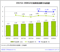陈妍 · 2008-10-22 16:31 - 艾瑞咨询:网络招聘市场规模突破3亿