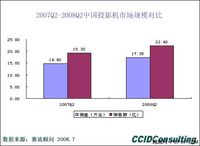2008年Q2中国投影机销售量为17.35万台 赛迪顾问数据显示,2008年Q2中国投影机销售量为17.35万台,销售额为22.4亿元,同比分别增长了17.2%%和16.1%%。从市场竞争格局来看,2008年Q2中国投影机市场销量排名前五位的分别是:TOSHIBA、EPSON、SONY、HITACHI以及BenQ。 2007年IT管理投资规模达367.73亿元 赛迪顾问数据