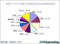 2008年二季度,中国数字电视机顶盒市场长虹占据13.6%%的份额 2008年二季度,九洲全面发力,国内国际市场双丰收;长虹在二季度继续有稳定的表现,以13.6%%的份额位居第一。天柏和创维分别位于第三和第四,销售量市场占有率为11.7%%和10.5%%。 2008年上半年中国GPS导航手机售量达137.3万部 2008年上半年中国GPS导航手机市场销量和销售额均实现快速增长