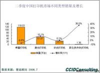 2008年二季度中国打印机市场类型销量及增长 二季度喷墨打印机市场依旧表现疲软,产品销量同比下降达到6.8%%,降至118.03万台,是造成打印机整体市场销售不景气的主要原因,但激光、热升华等打印机产品在交通、制造、政府、教育及家庭用户需求快速增长的驱动下依旧保持了较快增长,销售量同比分别增长了10.1%%和36.5%%,达到51.07万台和1.36万台。 存储市场在教育行业展现新