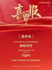 黄页 · 2026-04-08 21:54 - 华为之外优秀:深开鸿开源鸿蒙社区代码贡献量超过 800 万行