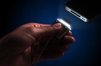[泡泡网 前沿电子频道] 很多人都非常头疼夜晚手机没电,因为如果要开灯充电的话会影响睡意,但如果是摸黑充电的话插头又很难链接,确实是个非常头疼的问题。不过不用头疼,Scrap Pile Labs开发的一款产品CordLite恰巧可以解决这种问题。 CordLite充电线能够在光线不足的情况下给用户提供照明,方便用户将线缆连接到iOS设备上。基座接口有两个前置的LED灯,用户触摸基