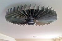 如果客厅里普通老木头吊扇或者其它吊扇根本不能产生足够的气流来满足你的喜好,也许你会考虑使用喷气发动机当中的风扇作为吊扇。现在美国一家名为Phighter Images的公司推出了使用喷气式发动机零件制造的吊扇和咖啡桌,试图让各种航空零件进入家庭。Phighter Images推出的家用冷却吊扇材料来自于普惠JT8发动机,吊扇直径达到令人印象深刻的39英寸,并通过遥控器进行控制,它比一个实际