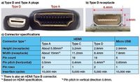 【泡泡网数字家电频道5月12日讯】随着HDMI端子的逐步普及,如何在一些小型的便携设备上集成HDMI端子也变得越来越重要。虽然之前有过专门针对移动设备的HDMI TYPE C规范,但是,更为灵活并且支持下一代HDMI标准的TYPE D型HDMI规范产品近日也逐渐浮出水面。 TYPE D规范的HDMI端子体积更为精简,