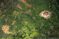 这是来自Survival International最新发佈的一辑照片,由摄影师Guilherme Gnipper Trevisan所拍摄,地点是巴西的北部、接近委内瑞拉边境地区的亚马逊雨林,大家知道右上角围成一圈的是什么吗?据其所述,这是亚诺玛米族(Yanomami)土著的小村落,里头估计有大约100名族人,而且相信从未接触过现代文明。 资料指出,目前有大约22000名亚诺玛米族人