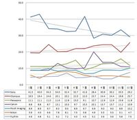 泡泡网数码相机频道2月2日 图片是去年 12 个月,日本的微单相机市场走势,从图赏呈现的数据来看,索尼在此市场领先于其他各品牌,第二位是奥林巴斯,至于佳能则与松下难分高下。趋势来说,似乎索尼稍有回落,反而奥林巴斯则缓缓上升。 来自BCN Ranking的报导,佳能营销代表董事社长川崎正己表示,根据其2015-17年中期计划,要在2017年让佳能成为微单相机市场的龙头。目前他们在影像产