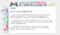 2007年,moshi cup于国内著名的Mac社群网站-【麦课一班】举办,我们看到很多感动,moshi决定将这份感动每年持续下去,今年我们要将这样的热忱扩展到两岸更多的地方。moshi cup不做设备的比较,不看镜头的长短,只想陪您一起看见拍摄最原始的初衷-感动。moshi cup 2008全民摄影比赛 除了两岸联合征稿,我们邀请了两岸目前活跃的摄影师宋波、刘名楷、尤能杰,四岁出没