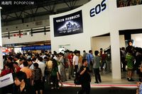 CHINA P&E2008:中国国际照相机械影像器材与技术博览会在京开幕: 这是位于国展2号厅的日本佳能公司展台前的情况,我们将通过两组现场照片来展示。日本佳能展台此次还是以过往产品的体验为主,重量级新品主要集中在下半年发布。另外佳能展台也并没有安排特别火爆的现场模特走秀,只是有些比较传统的现场舞蹈表演。不过佳能在国内的众多粉丝还是一大早就把展台围得水泄不通佳能的专业摄像机也参加了试用展