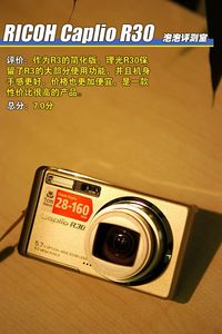 理光R系列数码相机的参数一直是市面上同类产品中最高的,现在热卖的R3就拥有28mm广角、7.1倍光学变焦、CCD防抖、1cm微距能力以及2.5寸超大屏幕等功能,几乎是一款完美的产品。而我们今天的主角是理光新推出的R3简化版R30。 R30之所以被称为是R3的简化版,是因为它取消了R3的CCD防抖功能,在光学变焦倍数上也有所缩减。不过它在其他功能上依然延续了R系列的特色,包括28mm