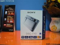 前几天,小编在索尼的官方网站上查找关于T30的信息时,发现索尼已经将其停产了,而新的T系列旗舰就是今天刚刚到货的T50。我们从经销商那里得到的报价是3150元送512MB卡,这个价格比T30当初上市的时候还要低一些,小编认为还是算非常超值的。 我们在e世界二层的一个索尼专卖店里发现了刚刚到货的T50 索尼T50的包装,延续了一贯的简洁风格,侧面标有T50的特点 这次到货的T