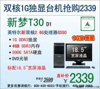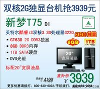 - 2339元可圆梦 神舟新双核1G独显机T30