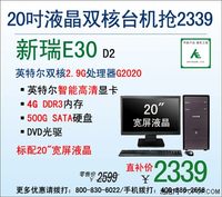 张涵 · 2013-03-27 00:00 - 双重提升 神舟新瑞双核台机E30仅2339