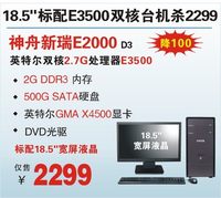 张伟伟 · 2011-09-16 00:00 - 神舟18.5吋E6500台机E3000仍售2499元