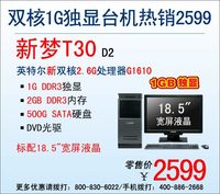 泡泡网电脑频道3月8日 丰富精彩的校园生活怎少得了一台性能出众、外观精致的电脑相陪伴呢?新学期,新梦想,神舟电脑将与您一起踏上大学的圆梦旅程!今天向您推荐的这款神舟新梦T30 D1,凭借着英特尔新双核2.6G处理器G550、1G DDR3独显、500GB硬盘、4G DDR3内存和18.5"宽屏液晶显示器等配置让用户获得极为优越的使用体验,而2339元的超值售价更是让它稳坐性价比台机霸主的宝