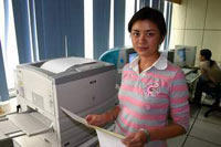 徐州医学院附属医院皮肤科实验室是个非常繁忙的部门,在这里,每天有大量的求诊患者需要及时取到化验结果,而所有的化验报告都要通过一台爱普生彩色激光打印机来输出。在皮肤科实验室里,电子显微镜,电脑和彩色激光打印机EPSON AcuLaser C900构成化验报告输出的基本流程。 EPSON AcuLaser C900徐医附院皮肤科实验室的这台EPSON AcuLaser C900打印机是2003年购进的