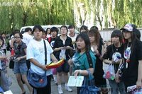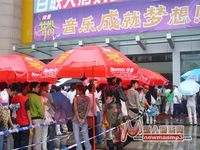 自3月底纽曼梦想中国西南五省区的报名工作在成都拉开后,不仅吸引了大批俊男靓女的眼球,也引来了更多怀揣梦想的百姓瞩目。报名热线持续不断,追逐梦想的热浪一阵高过一阵。在2个月的漫长期待中,2006CCTV《梦想中国》西南五省区比赛今日在成都正式敲响战鼓,上万名追梦人从这里踏上梦想之旅。 梦想之门从这里开启 选手在外面焦急地等待 上午八点半,百联天府购物中心的大门准时开启,前来参加初试的选手鱼贯而