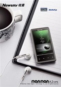 纽曼作为一款本土品牌,近日又推出一款超薄的时尚播放器产品,那就是具有全金属机身16:9屏幕比例的MANMAN A2。今天A2到站,让我们来实际试用一番。 纽曼MANMAN A2官方宣传图 MANMAN A2采用一块3.0英寸16:9的QVGA屏幕。全金属的机身,镀亮的背部模板保护。使得A2在整体的手感上颇佳。它的屏幕顶部内嵌有纽曼的金属反光LOGO。屏幕底部设置有四个触摸感