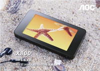 演而优则导,在MP3/MP4领域里也非常常见。比如在液晶显示器领驭独当一面的AOC,旗下的众多PMP产品也非常受欢迎。今天评测室到达一款其产品线上新品,AOC X800,让我们来看看这款产品如何。 AOC X800官方宣传图 AOC X800使用一块4.3英寸1600万色的液晶屏。屏幕下方有AOC的产品LOGO。整个面板使用亚克力材质保护。正面没有设置任何按键,AOC X800把按