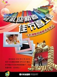飞利浦一贯秉持“精于心,简于行”的企业理念早已深入人心,享有极高的品牌知名度和美誉度。正是凭藉深可信赖的优良品质、体贴入微的售后服务,飞利浦在数码相框市场上具有无可置疑的领导地位。 年终岁末,虎年来临之际,飞利浦与联强国际联合推出送限量版毛绒老虎相框套活动:从即日起至2010年2月28日,凡购买飞利浦数码相框SPF2107一台,即可获赠限量版毛绒老虎相框套一个,数量有限,送完即止。好礼传心意,精