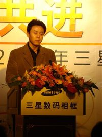 2010年1月21日,三星数码相框全国代理商大会在珠海成功举行。来自全国各地百余位总代理商和销售精英汇集于此,以“共进,共赢,共辉煌”为主题,在庆祝过去的辉煌成绩之余,也为全新的一年共商发展大计。三星(中国)投资有限公司广州支社IT部长郑承穆先生、显示器设备部部长李连生先生出席了大会。 三星(中国)投资有限公司广州支社IT部长郑承穆先生发表讲话 肯定过去 信心满载