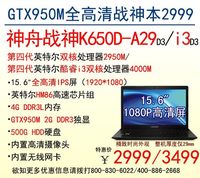 泡泡网笔记本频道9月10日 教师节怎少得了神器助力,勇闯江湖战神带你飞。9.9神舟品牌团聚划算巅峰之战!神舟开学季回馈广大用户,9月9日聚划算嗨翻全场,最高降幅达1000元。22款机型从1k到10k,覆盖低端入门笔记本到高端超级战神游戏笔记本,主打战神系列让游戏更尽兴,娱乐生活两不误神舟超级战神本,为你量身打造属于你的战神本。 今天小编为大家介绍热门爆款GTX950M战神本K650D