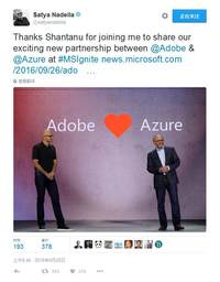 李佳辉 · 2016-09-27 17:13 - 微软与Adobe达成合作为大客户提供云产品