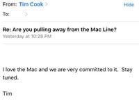 李佳辉 · 2016-09-12 09:07 - 库克的回信:我热爱Mac产品线 敬请期待