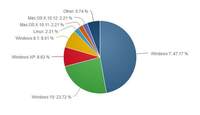 市场研究公司Netmarketshare的最新数据显示,在2016年底之前,Windows 10在全球PC市场的份额预计将达到24%%。Windows 10目前的份额为23.72%%,Windows 7仍然高达47.17%%。Windows整体份额增加了1个百分点,但Windows 7却下滑了1个百分点,Windows 8/8.1也大幅下滑。预计这一趋势将延续下去。Windows 10的整个大幅
