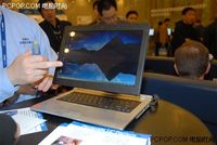 2006年4月18日,以“优化平台,超越未来”为主题的2006春季英特尔信息技术峰会今天正式在北京拉开序幕,有超过4000名来自全国各地的IT专业人员、合作伙伴、业内专家以及媒体代表齐聚一堂,出席这一全球最负盛名的IT盛会。PCPOP电脑时尚受邀参加了此次盛会,并且第一时间从现场发回了报道。 图片上所展示的是Intel最新的概念笔记本,它12英寸的机身中内置了两块1.8英寸硬盘组成