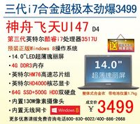 周坤 · 2013-12-06 00:50 - IVB平台i7超极本 神舟UI47劲爆3499元