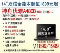 - 神舟电脑奔腾双核本!A480B-B9爆1999