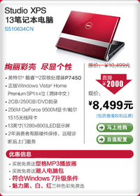 泡泡网笔记本电脑频道9月25日 距离祖国60岁华诞还有不到一周的时间,各大整机厂商纷纷通过火爆促销来迎接这一盛大节日的到来。其中,作为国际一线品牌,戴尔已经开展了热卖促销活动,与一些厂商赠送礼品不同,戴尔官网在准备了丰厚礼物的同时,直接下调主力机型的售价,最高幅度甚至达到2000元。 Studio XPS 13的优惠幅度最大 在热卖活动中,较为引人瞩目的包括降价15