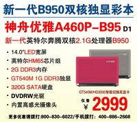 徐燕玲 · 2011-11-09 16:49 - 新品上市!神舟双核彩本A460P仅售2999