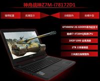 年货节提前购,最懂你的笔记本,最贴心的品牌,最超值的性价比,满足你的一切要求,神舟电脑感恩回馈,低价风暴,豪礼馈赠!神舟天猫旗舰店预热节货节,GTX965M独显本战神Z7M-i78172D1直降500元,仅售5499元,你还在等什么?(https://hasee.tmall.com/)。跑车造型+1080P全高清屏 战神Z7M采用神舟专用全新模具,造型酷似跑车,其B面配备了一块15.