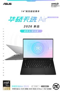 刘灿 · 2026-01-14 11:17 - 华硕推天选Air 2026锐龙AI Max版,将锐龙AI Max带入轻薄游戏本