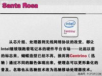 Santa Rosa 更快的处理器和芯片组;效果更为出众的视频和图像,信号更强、覆盖面积更大、速度更快的无线传输;更佳的安全性和可管理性;为高能效和更长的电池续航时间而设计;以及一个可以加速系统启动时间和应用软件装载速度的可选组件;这就是英特尔公司在5月9日发布的包括更快的英特尔®酷睿™2双核处理器在内的一系列全新技术, 这些将作为英特尔新一代迅驰®处理器技术,在面向消费类用户和商