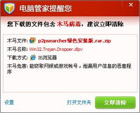 泡泡网软件频道7月20日 近日,泷泽萝拉、画皮2等关键词一度飙升,相关热门影片的搜索请求量居高不下,同时也给了木马散播可乘之机。电脑管家分析发现,网络流行的种子搜索软件P2pSearcher中,被黑客修改捆绑了一款新型“神器终结者”木马,对网友的电脑安全造成严重威胁。 P2pSearcher是一款基于P2P技术的资源搜索软件,利用它无论是电影、小说、图片还是音乐都可以轻松搜索;正