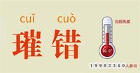 “璀错”,出自李白《拟古》诗之七的“人非崑山玉,安得长璀错”一句,可以理解为世人不是那昆山玉石,怎能够长久盛美?“璀错”一词也就是繁盛的样子。 “璀错”一词,也是《2015中国汉字听写大会》携手搜狗输入法“全民焐热冰封汉字”活动释出的冰封第三词。前两期《2015中国汉字听写大会》播出后,焐热活动在网上掀起了一股造句热潮,小编也不能免俗,遇到什么,总是禁不住想要用哪个冰封词来形容一下,