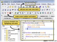也许经常编辑文本的用户都会认识UltraEdit,这是一个功能超强的文本、HTML和十六进制编辑器,也可以作为高级 PHP、Perl、Java 和 JavaScript 程序编辑器。该软件内建英文单字检查、C++及VB指令突显,可同时编辑多个文件,而且即使开启很大的文件速度也不会放慢。并且附有 HTML Tag 颜色显示、搜寻替换以及无限制的还原功能,很多高级用户还使用它来修改EXE或DL