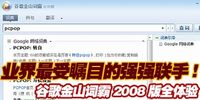 编者按:这段时间关于谷歌与金山之间关系的传闻很多,而这当中的主角却并不是这两家公司本身,而是一款我们国内用户使用了10年的老牌词典软件金山词霸的全新版本将要推出。本次的金山词霸08新版为了区别于以往的版本同时也是根据多年用户的反馈并结合时下最好的互联网模式,而推出了谷歌金山合作版,这次在业界引起震动的合作事件对于双方来说都是一次全新且勇敢的尝试,金山凭借多年对于词典软件的经验加之谷歌与生俱
