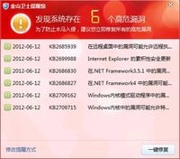 泡泡网软件频道6月13日 微软在北京时间6月13日凌晨发布补丁,涉及 7 个公告号。包括修复3个 Windows 漏洞,IE漏洞、Microsoft .NET Framework 漏洞和Office漏洞各1个。严重级别的漏洞包括Windows远程桌面漏洞和IE漏洞,漏洞可能导致开启远程桌面服务的Windows被黑客入侵,IE漏洞可被用于网页挂马攻击。目前,国内流行的安全软件金山卫士已第一时