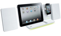 JVC日本近日公布了可同时用于iPods, iPads和iPhones的基座产品UX-VJ3和VJ5,它除了内置30W的立体声扬声器外,还有许多功能。例如VJ5型号在iPad放置区域的背后内置了一个CD机,这意味着在没有苹果设备的前提下也可以放音乐,如果没有CD,那还有USB设备支持和AM/FM收音功能呢。这款底座的售价合320美元。 UX-VJ3