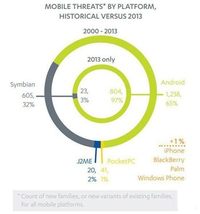 泡泡网手机频道5月6日 智能手机的不断普及,让人们的移动生活变得更加精彩,但是,越来越多的“手机病毒”却时刻威胁着人们的移动安全,尤其是在开放的安卓平台。 近日,安全机构F-Seure发布了2014年第一季度手机威胁报告,PP助手从该报告中了解到,今年前3个月一共有277个新的安全威胁类型或变种影响移动安全,其中多达275个出现在安卓平台上,占总量的99%%。 (图1:2014年第一