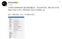 王原 · 2024-08-07 14:14 - Redmi Note14系列通过国家质量认证:支持 45W 快充