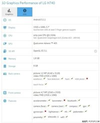 近日,LG官方确认将在10月1日在纽约召开“SAVE THE DATE”发布会,届时将会发布已被曝光的高端新旗舰机LG V10。现在,又有一款LG新机型露面于国外跑分网站GFXBench。 从GFXBench网站给出的数据来看,这款新曝光的机型型号为H740,配备一块5.7英寸的1080p高清屏,搭载1.5GHz骁龙615处理器,运行内存2GB,机身存储8GB,搭配1300万像素后置摄像头及