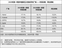 姜思文 · 2024-04-26 10:31 - IDC发布2024年第 一季度数据:OPPO稳居国内手机市场前三