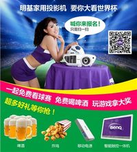 泡泡网投影机频道6月26日 继明基世界杯球迷狂欢夜首轮盛典于北京大获成功后,“明基家用投影机陪你大看世界杯”系列活动又于6月21日来到上海,并进驻素以体育主题为特色的The Camel sportswear bar(骆驼酒吧)。一样提供口感冰爽的免费啤酒、香脆可口的美味炸鸡、性感火辣的足球宝贝!一样有叫人惊喜的丰厚大奖现场送出,更有全系列明基家用投影机,为上海球迷朋友投射出百寸以上