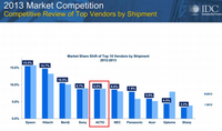 张涵 · 2014-03-14 00:04 - IDC2013年报告 雅图全年出货跻身第五