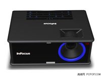 泡泡网上海站8月6日 富可视IN2196投影机是一款基于DLP投影技术的投影机,整机拥有3500流明的超高亮度,配合良好的绝尘设计,同时外观采用全黑色设计,整体外形有点像房屋的设计风格,在机身前端设计了前沿,并采用拉丝面板来衬托镜头与LOGO。值得一提的是,这款投影机的镜头采用白色圆环设计,当机器工作时白色圆环将变为蓝色背光,非常的有个性。