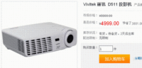 泡泡网投影机频道9月3日 ● 产品型号:丽讯 D511 (报价 参数 图片 评论 ) ● 产品现价:4999元 ● 购买链接:易迅网 ● 编辑点评:丽讯D511是一款支持3D显示功能的中低端商住两用投影机,采用了经典的白色烤漆设计,整机流畅简约,机身重量仅1.9kg,十分轻盈灵巧,方便用户随身携带;其采用德州仪器DMD芯片,拥有2600流明亮度,3000:1的对比度,1024×7